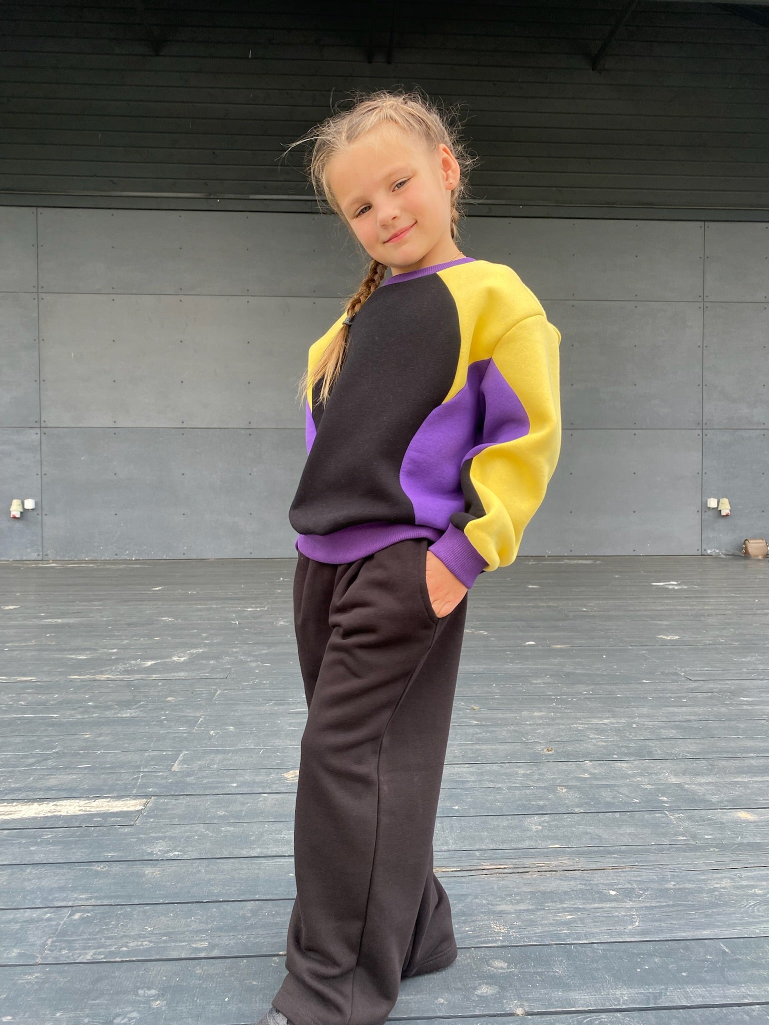 Spalvingas, išskirtinio dizaino kostiumėlis! 🟨🟣⬛ Unikalus kirpimas ir kontrastingos spalvos leidžia vaikui išsiskirti iš minios ir jaustis ypatingai kiekvieną dieną. Patogus, šiltas ir nevaržantis judesių – puikus pasirinkimas tiek pasivaikščiojimui mieste, tiek jaukiam laikui namuose 🏡