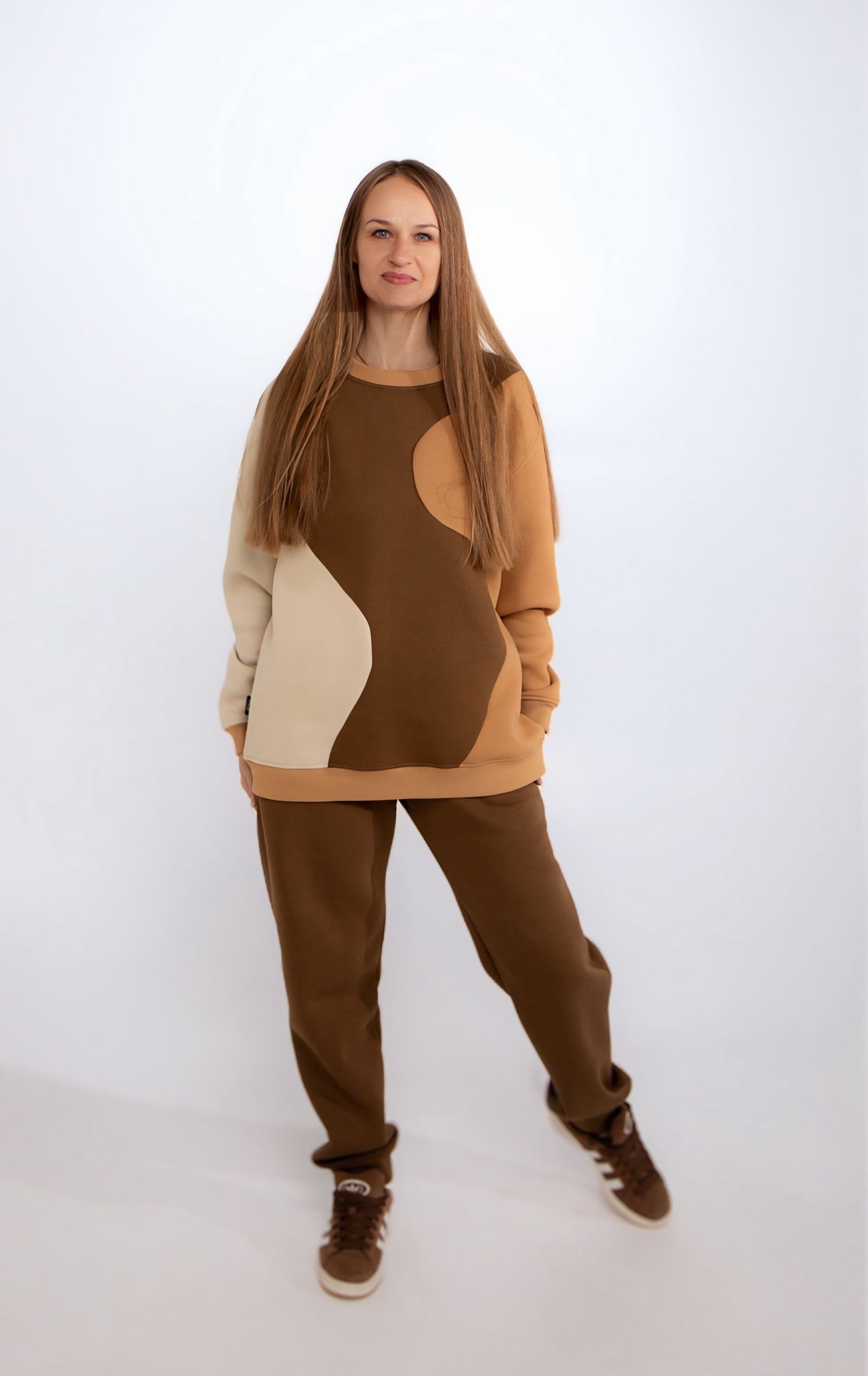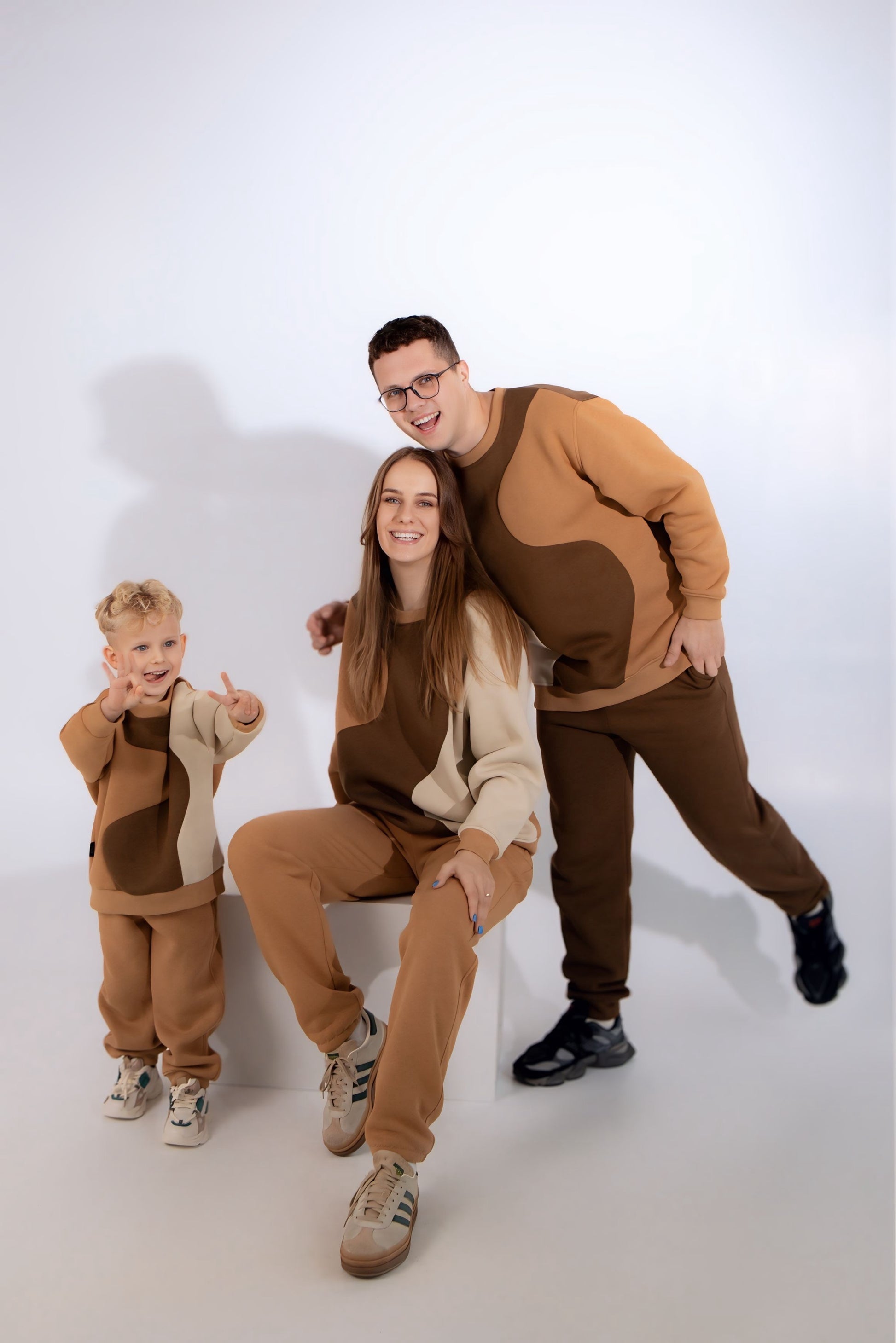 Unikalus banguotas dizainas ir žemiškų atspalvių derinys simbolizuoja artumą, šilumą ir harmoningą šeimos ryšį. Puikiai tinka visai šeimai – vaikams, mamai ir tėčiui!