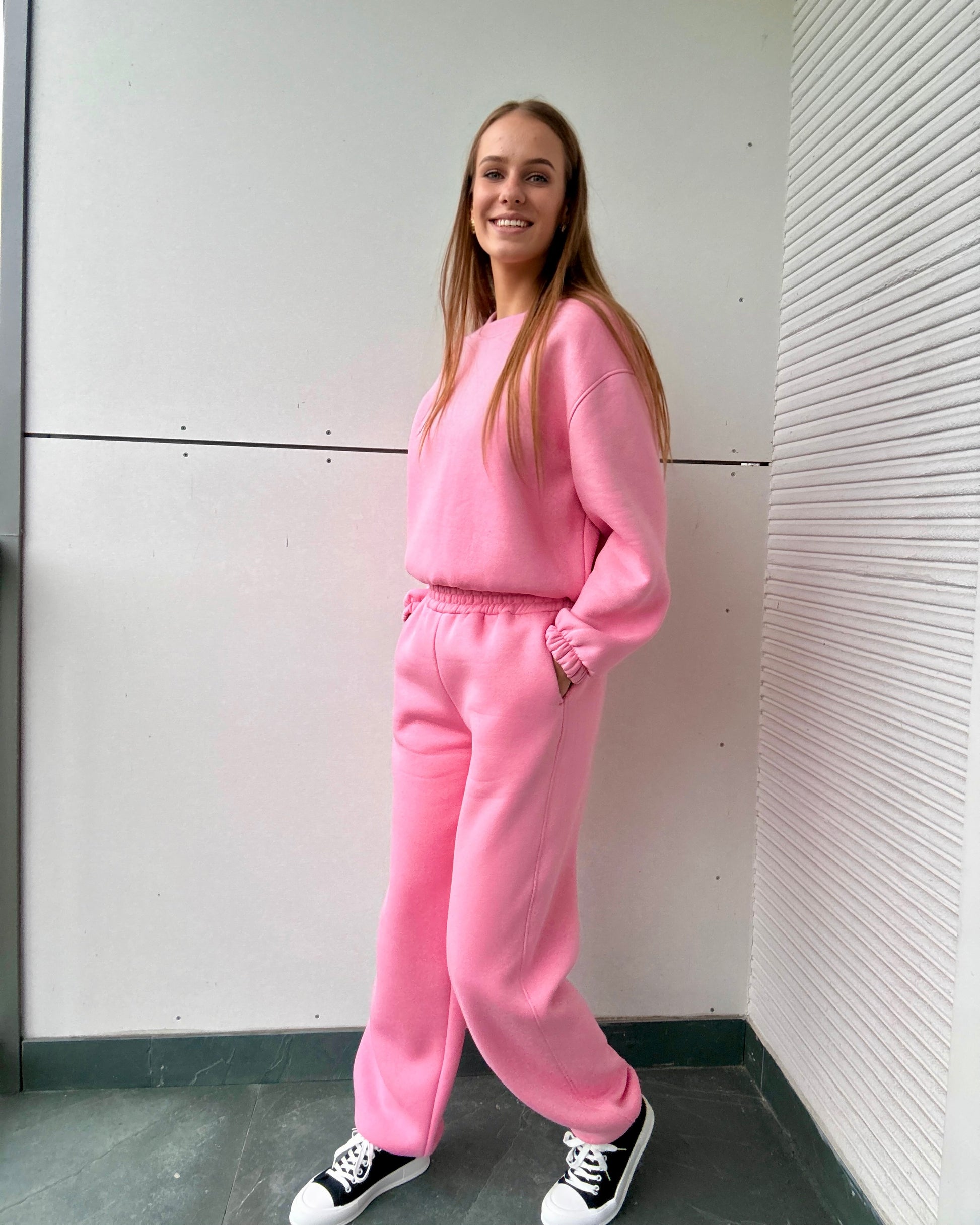 Kai norisi paprastumo, bet su saldžiu stiliaus prieskoniu – šis kostiumėlis kaip tik tau! 💗🍥 Minkštas, šiltas ir be galo patogus – puikus pasirinkimas tiek ramioms dienoms namuose, tiek aktyviam laisvalaikiui mieste 👟💨