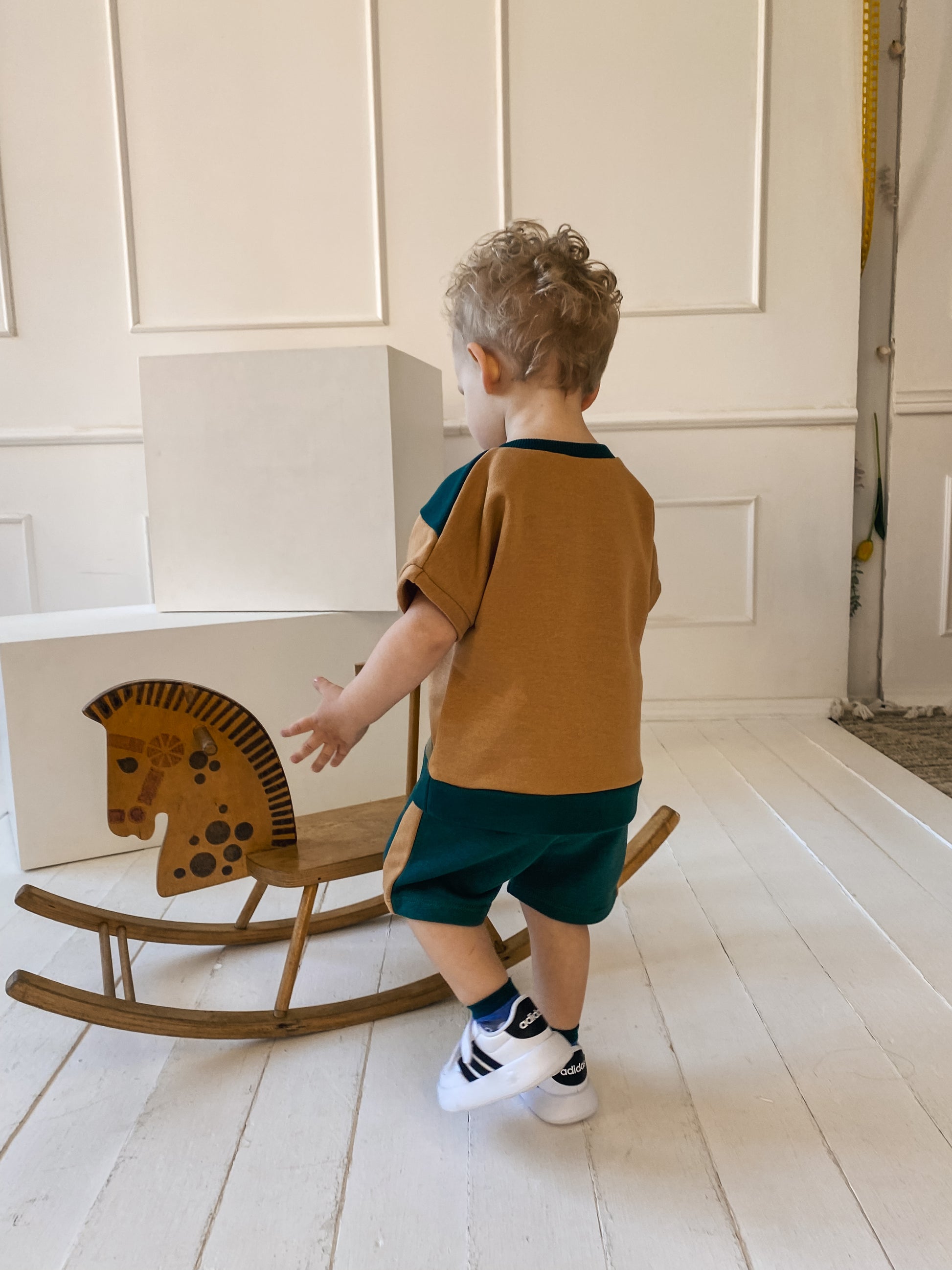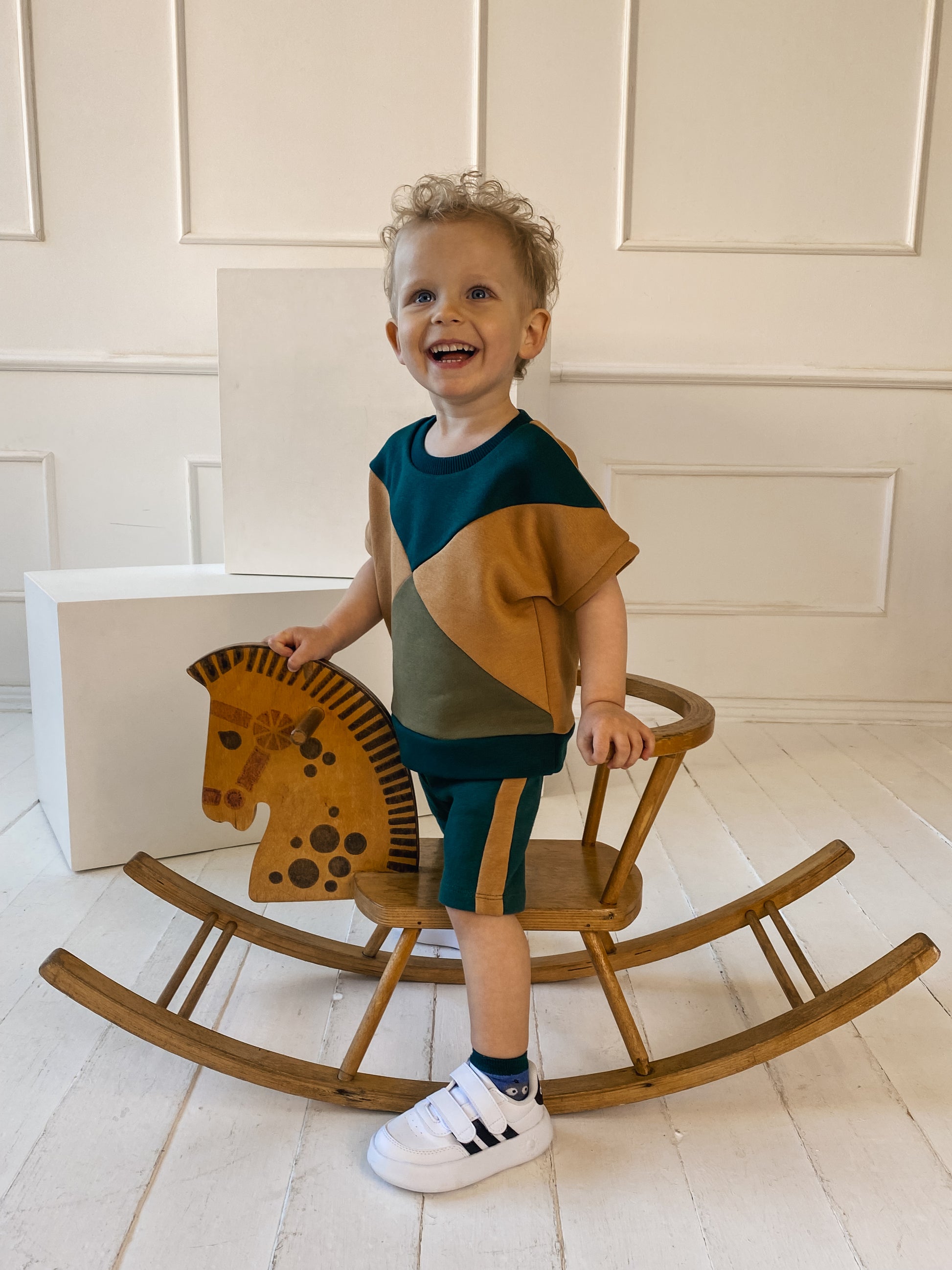 Šis kostiumėlis ne tik patogus, bet ir pasiūtas iš minkšto, kvėpuojančio kilpinio trisiūlio trikotažo, kurio sudėtis yra 80% medvilnės ir 20% poliesterio.