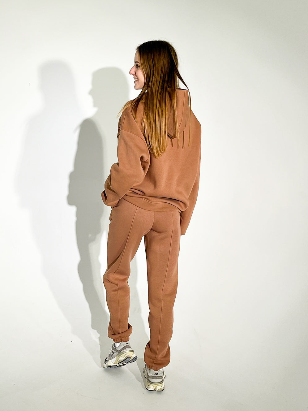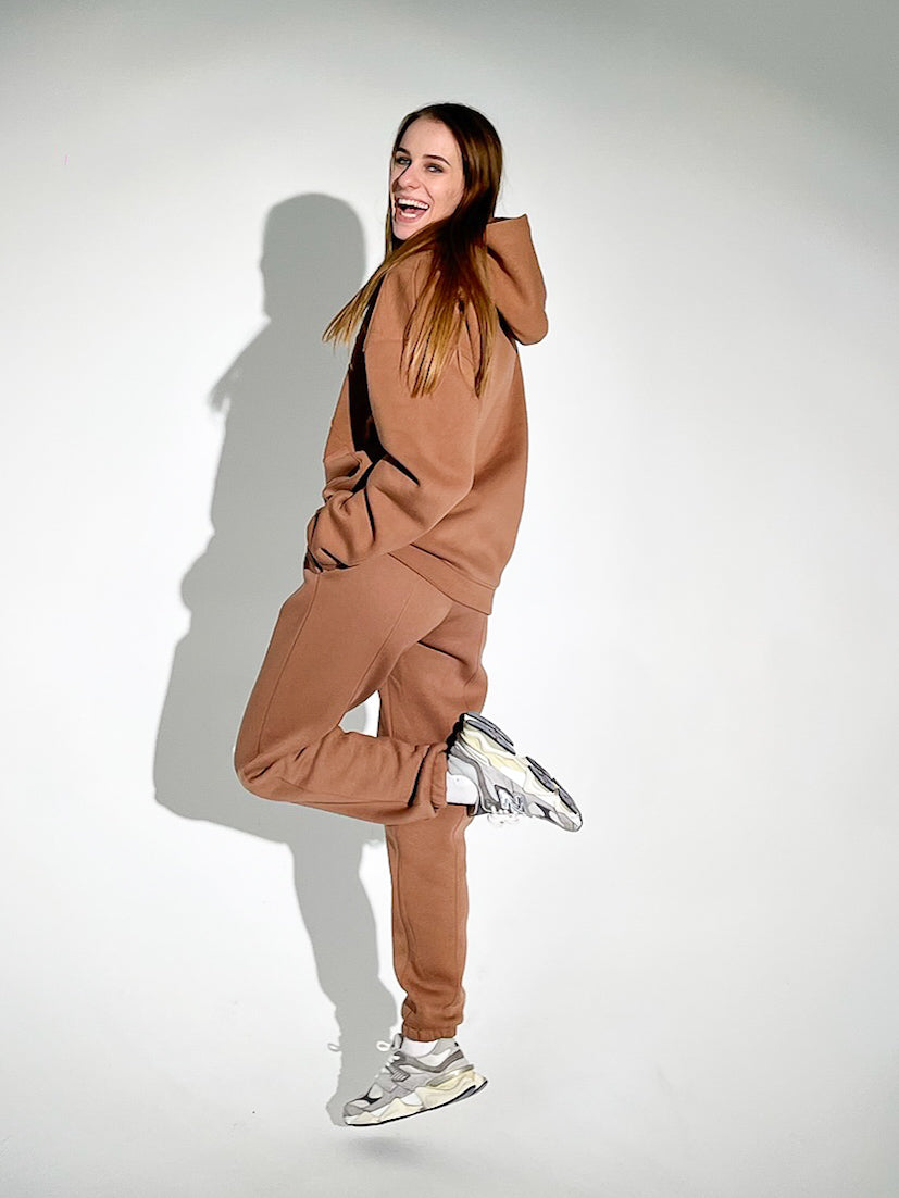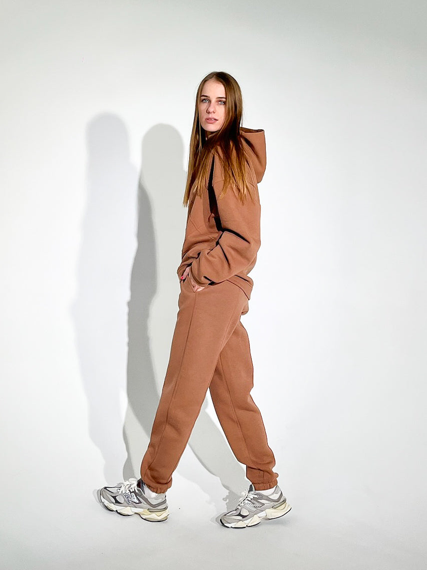 Stilingas, jaukus ir praktiškas – šis kostiumėlis puikiai tinka tiek aktyviai dienai, tiek poilsiui. Kruopščiai parinkta audinio sudėtis užtikrina patogumą bei ilgaamžiškumą, o universali riešutų spalva suteikia elegancijos ir šilumos jausmą.