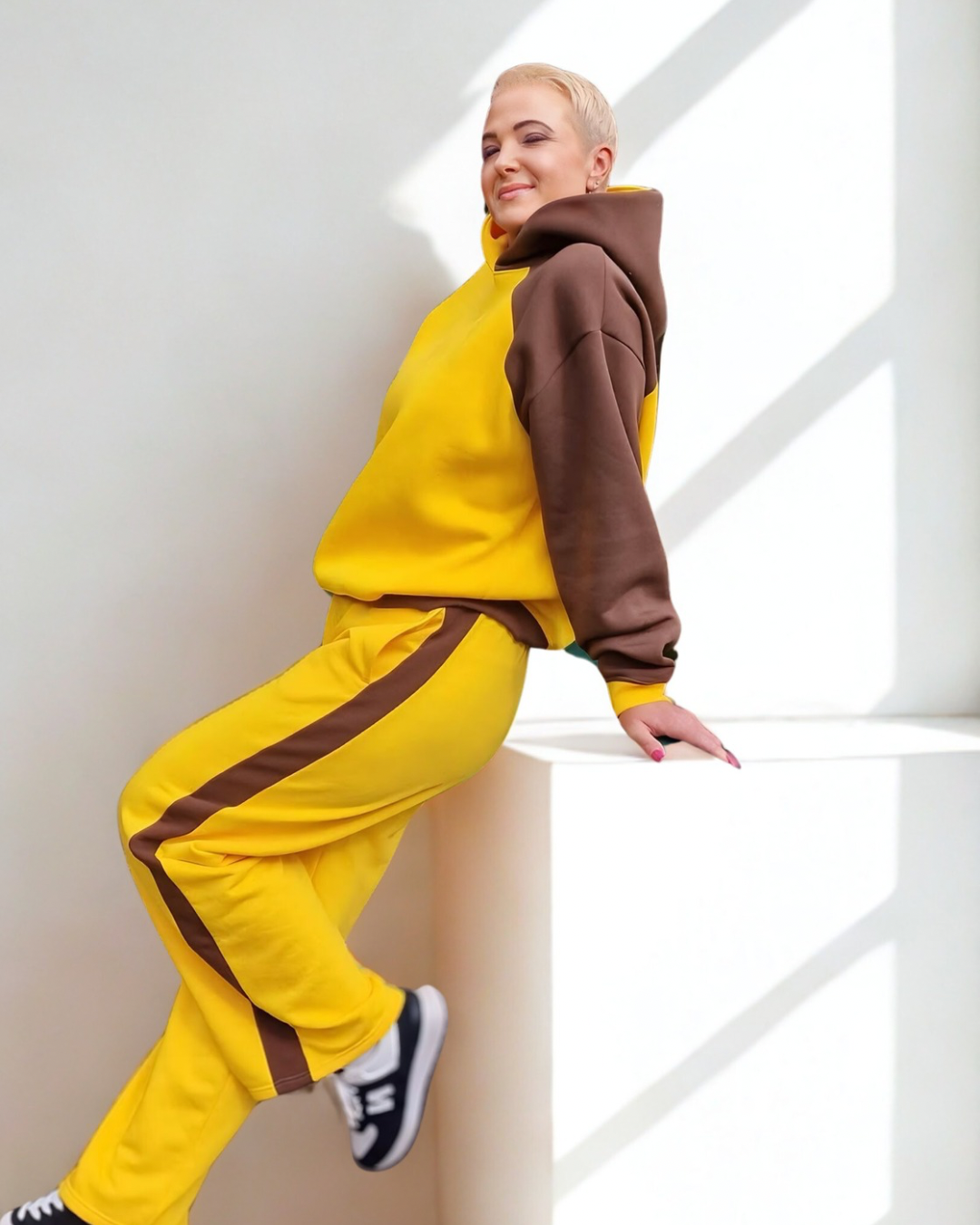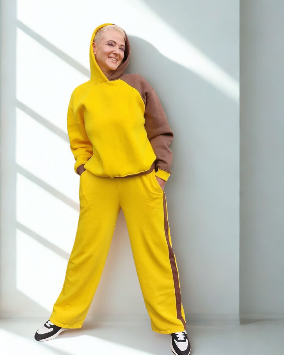 ✨ Ryškus ir pozityvus dizainas – geltonos spalvos derinys su šokoladiniais akcentais suteikia energijos bei stiliaus.