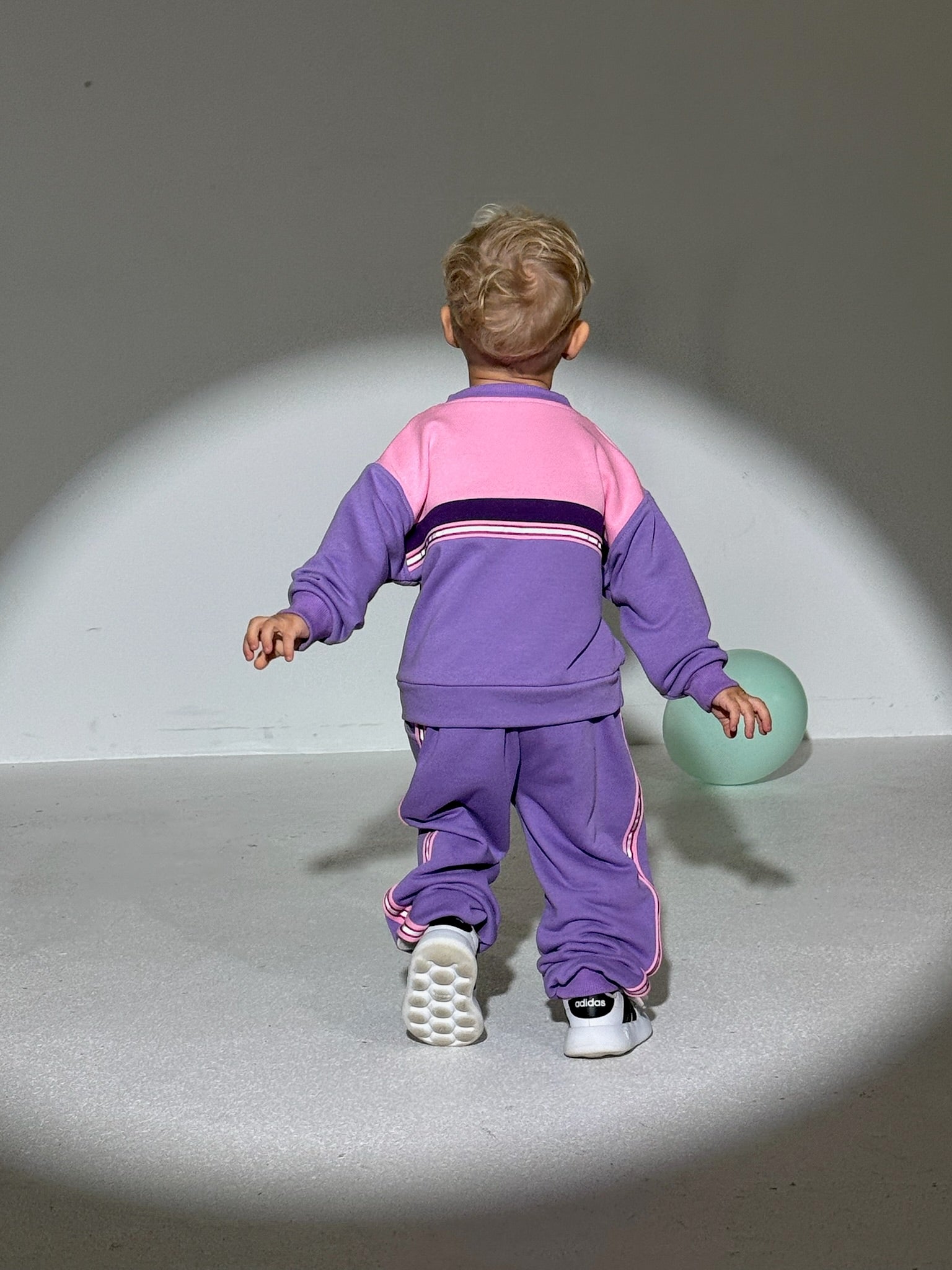 ✨Tai tikra spalvų harmonija, kuri primena vaikystės svajones ir linksmus žaidimus. Ryškiai violetinė ir švelniai rožinė spalvos suteikia gyvybingumo, o subtilūs juostelių su atšvaitais akcentai ant rankovių ir kelnių įneša modernumo. Šis komplektas puikiai tinka tiek mergaitėms, tiek berniukams!