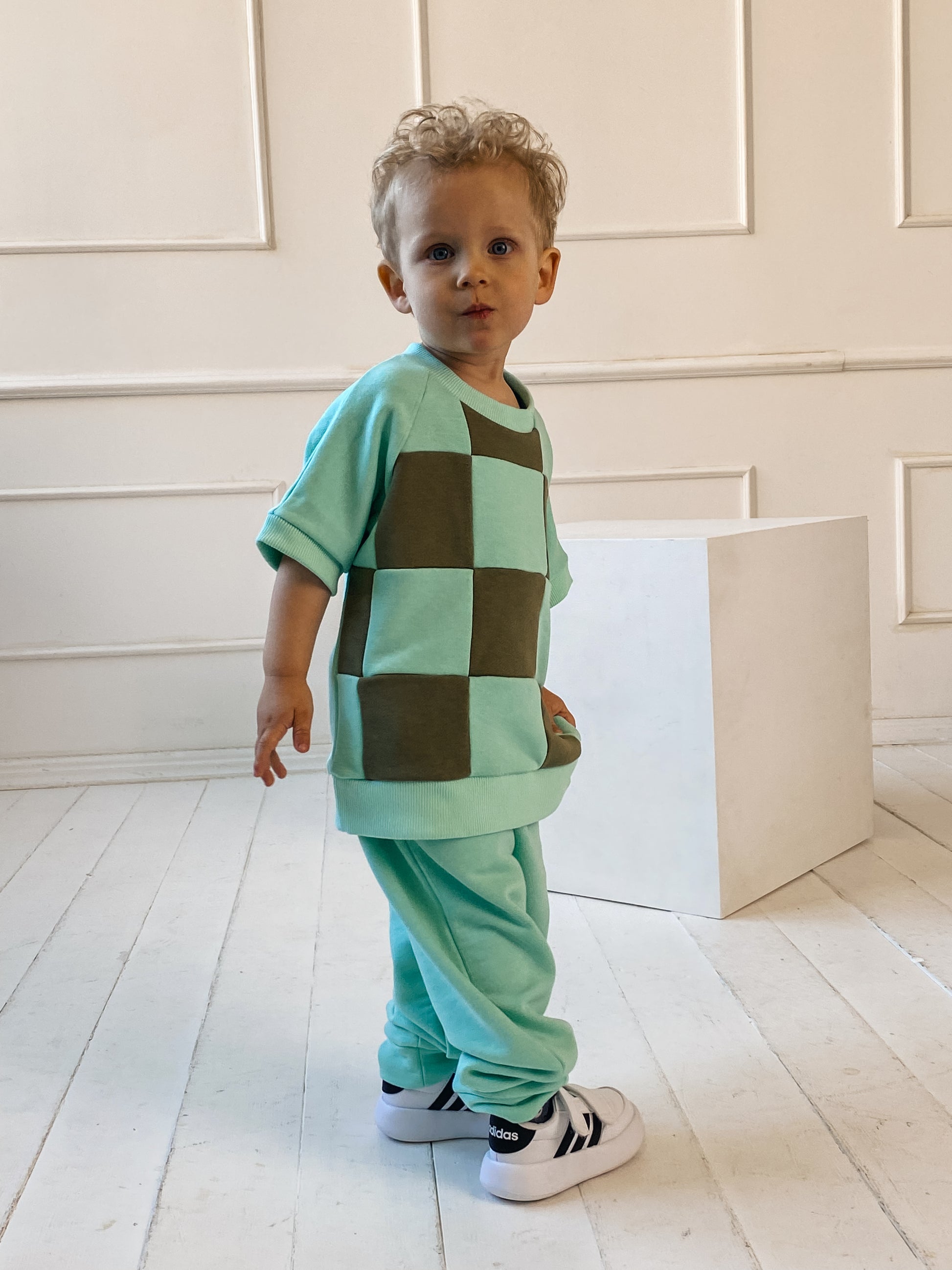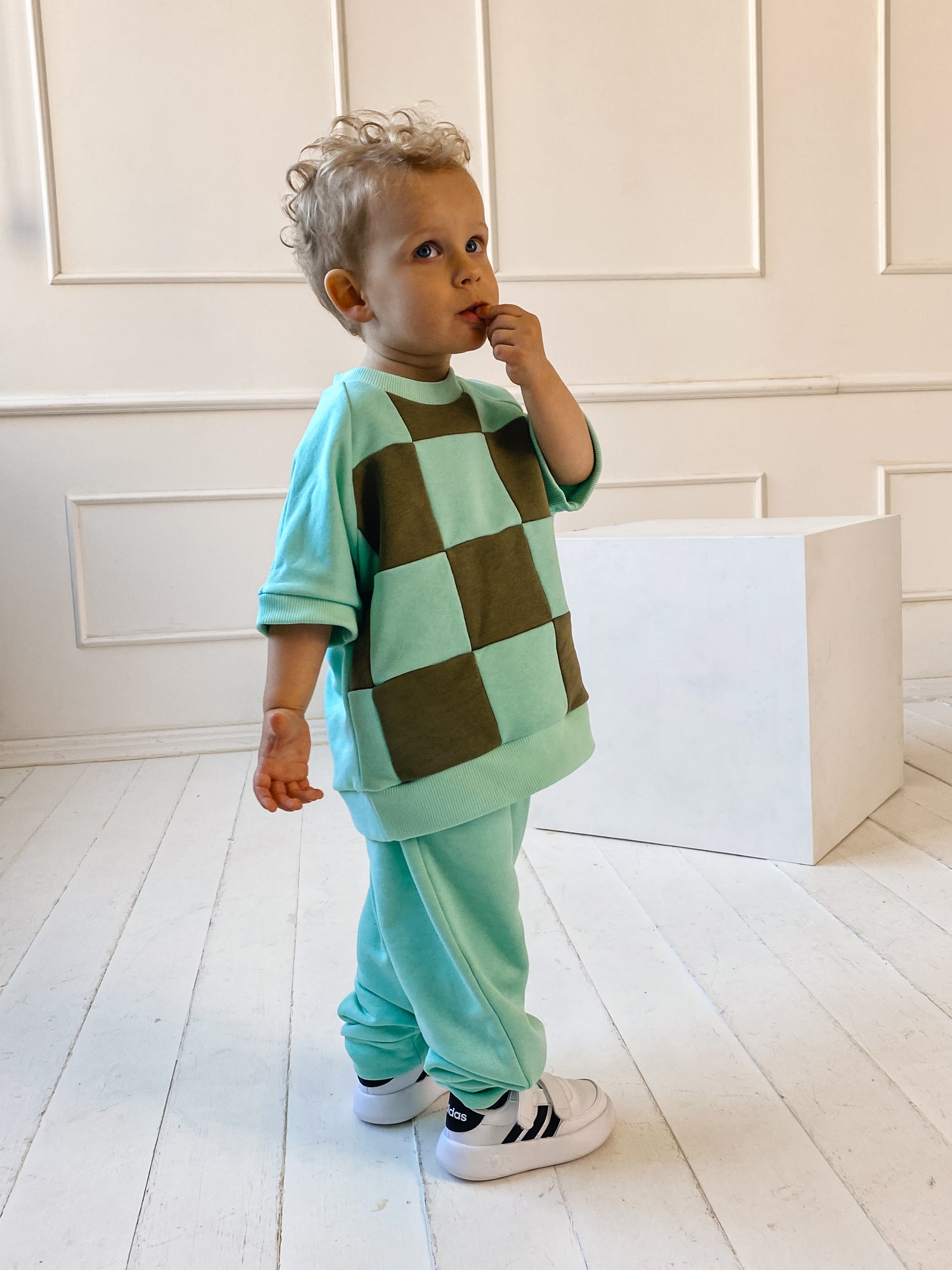 Šis kostiumėlis ne tik patogus, bet ir pasiūtas iš minkšto, kvėpuojančio kilpinio trisiūlio trikotažo, kurio sudėtis yra 80% medvilnės ir 20% poliesterio.